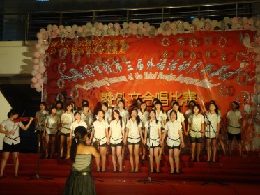 为了深入学习实践科学发展观,进一步提高学生专业素质,5月10日晚上,外国语学院第三届外语活动月开幕式暨“班班有歌声”外文合唱比赛在荣茂楼一楼大厅隆重举行。