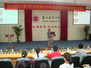 为深入学习实践科学发展观,庆祝祖国六十周年华诞,由教育科学学院承办的面向全校的多媒体制作大赛于5月14日下午在孙中山第三学术报告厅举行。经过激烈的比赛,最后来自教育科学学院教育技术专业06级陈龙源、陈幼霞摘取桂冠。