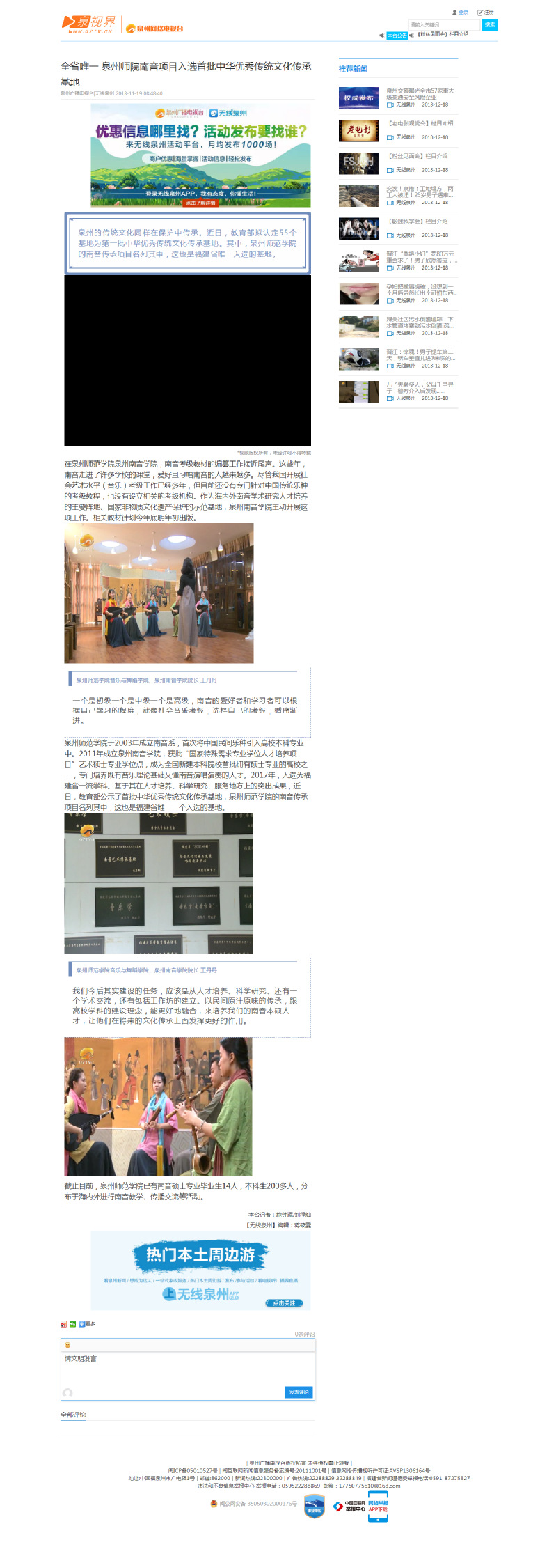 泉州师范学院于2003年成立南音系,首次将中国民间乐种引入高校本科专业中。2011年成立泉州南音学院,获批“国家特殊需求专业学位人才培养项目”艺术硕士专业学位点,成为全国新建本科院校首批拥有硕士专业的高校之一,专门培养既有音乐理论基础又懂南音演唱演奏的人才。2017年,入选为福建省一流学科。基于其在人才培养、科学研究、服务地方上的突出成果,近日,教育部公示了首批中华优秀传统文化传承基地,泉州师范学院的南音传承项目名列其中,这也是福建省唯一一个入选的基地。