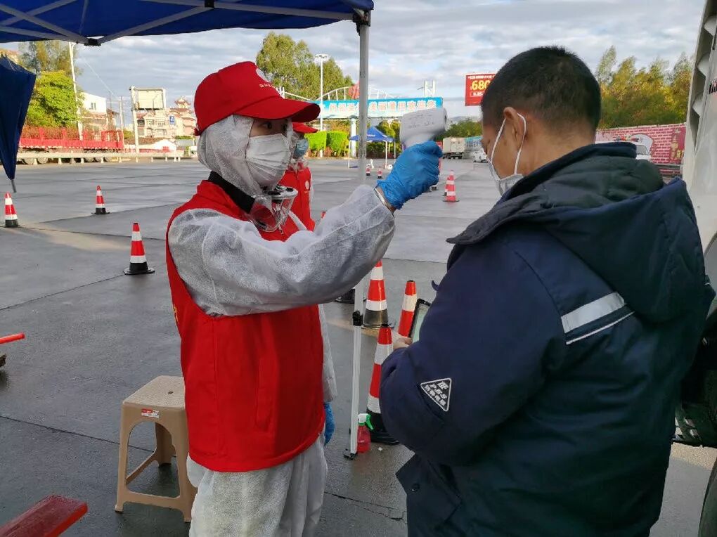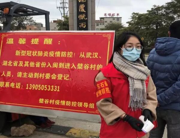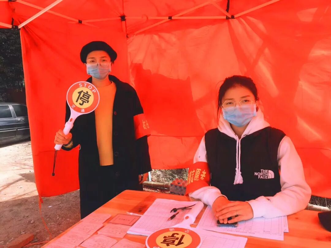 童烨钫、童烨锋,是龙岩连城姑田镇的一对双胞胎,同为集美大学16级在校学生。当得知村里防控疫情需要志愿者的时候,身为中共党员的姐姐童烨钫毫不犹豫,主动报名,带着妹妹一同参加村口值勤。姐妹俩在值班点负责分发村民实名制通行证、登记村内人员及过往车辆出入情况和测量体温等工作。值班时间要求是早上八点到晚上八点,中午无固定午休,姐妹俩就轮流吃午饭。工作虽然简单,一天下来也会腰酸腿痛,但这对“姐妹花”觉得能为防疫出份力,值得!福建师范大学音乐学院2017级音乐学基地班学生蔡李琪对进入城区的每一位群众进行测温登记。