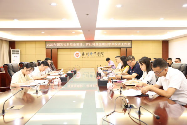 9月11日,2023年泉州师范学院国家社科基金项目、省社科基金项目中期检查工作会议在我校南益行政楼二楼会议室召开。福建省社科联党组成员、秘书长洪金镖,福建省社科联规划办主任肖孟刚莅临指导,对2020、2021及2022年度立项的国家社科基金、省社科基金各类在研项目进行中期检查。副校长夏侯建兵、社会科学发展研究中心(社科处)相关人员及部分项目负责人参加本次中期检查工作会。会议由社科中心(社科处)负责人主持。