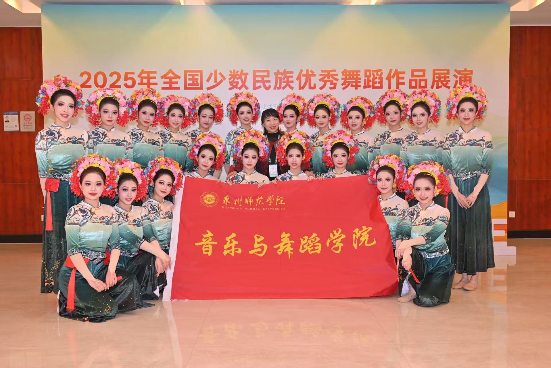 10月25日至27日,由国家民族事务委员会、文化和旅游部联合主办的2025年全国少数民族优秀舞蹈作品展演在湖北武汉举行。由我校音乐与舞蹈学院叶晓丽教授编导,舞蹈学专业本、硕学生表演的舞蹈作品《簪花围》,经福建省民族宗教厅、省文旅厅联合申报成功入选,并赴湖北武汉参加现场展演和惠民演出,为我省唯一入选作品。