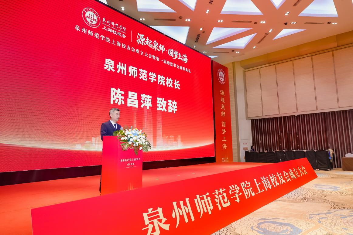 陈昌萍代表学校向上海校友会的成立表示祝贺。他指出,广大校友是泉师历史的见证者、亲历者,更是未来泉师发展的推动者。上海作为长江三角洲城市群的核心城市,历来是学校校友们创新创业的热土。校友们用实干诠释了“泉师人”的责任与担当,为上海的教育振兴、经济发展、文化繁荣作出了重要贡献,也为母校赢得了良好声誉。他希望上海校友会能成为“联结校友的驿站”,传递母校动态,分享校友资讯,让校友无论身在何处,都能感受到“泉师人”的归属感;成为“赋能成长的纽带”,积极整合多方资源,为母校与上海的交流合作搭建全新桥梁,为母校与上海的交流合作搭建新的桥梁,助力学校在人才培养、科学研究、社会服务等方面实现更高质量的发展;成为“精神传承的桥梁”,践行“敢为人先、爱拼敢赢”的泉州城市精神,弘扬“善学如泉、正心至大”的校训理念,以更好的业绩、更大的成果回馈母校的培育之恩,践行服务社会的责任担当。