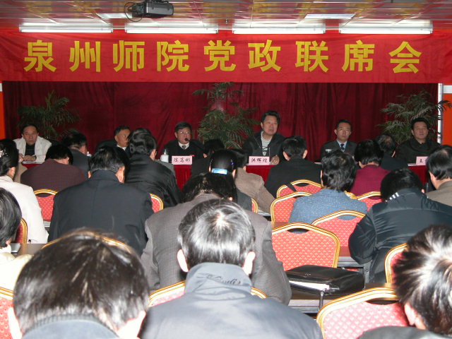 2007年元月10日,我校党政联席会在东海校区行政楼大会议室召开。校领导洪辉煌、陈笃彬、张舟、赖新民、王炳庆、林华东以及全校副科级以上干部参加会议。党委书记洪辉煌和院长陈笃彬在会上讲话。