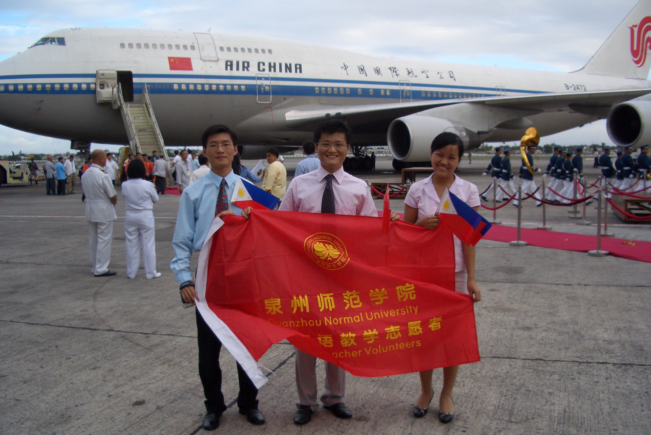 应菲律宾总统阿罗约的邀请,中国国务院总理温家宝13日乘专机抵达菲律宾中部城市宿务,出席第十次中国与东盟领导人会议、第十次东盟与中日韩领导人会议和第二届东亚峰会,并主持召开第七次中日韩领导人会议。15日下午,温总理抵达菲律宾首都马尼拉对菲律宾进行正式访问,我校在菲志愿者代表在带队教师的带领下到马尼拉国际机场热烈欢迎温总理。(林国宏)