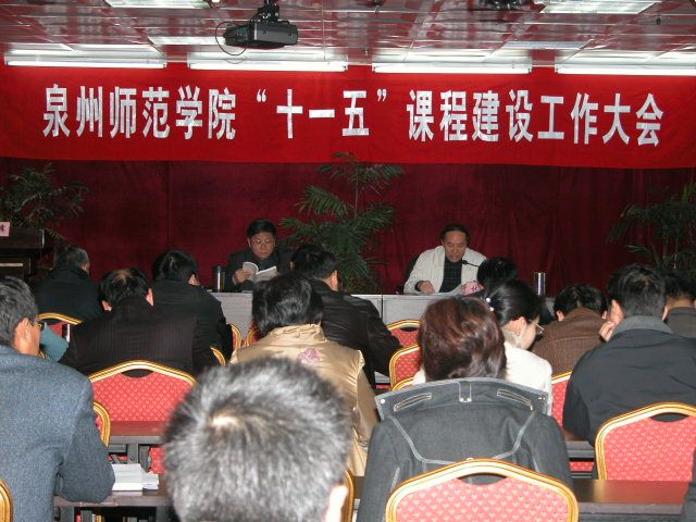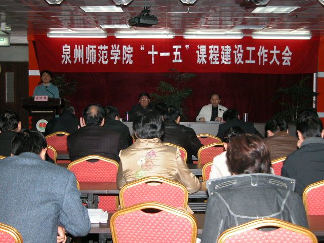 2007年1月18日,我校召开“十一五课程建设工作大会”。学校相关部门负责人、各二级学院院长、分管副院长、教务科负责人、专业主任、教研室主任以及优秀课程精品课程负责人共100多人出席了会议。会议由副院长林华东主持。会上,人文学院谢英教授、资源环境学院郑伟民教授分别代表二级学院和课程负责人就课程建设经验作了典型发言。