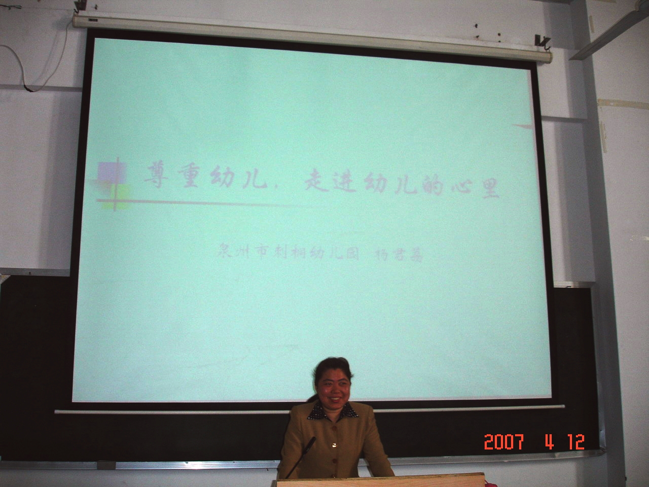 4月12日下午,教育科学学院学前教育专业邀请了泉州市刺桐幼儿园园长杨君荔在文科B214做了一场题为《尊重幼儿,走进幼儿的心里》的讲座。