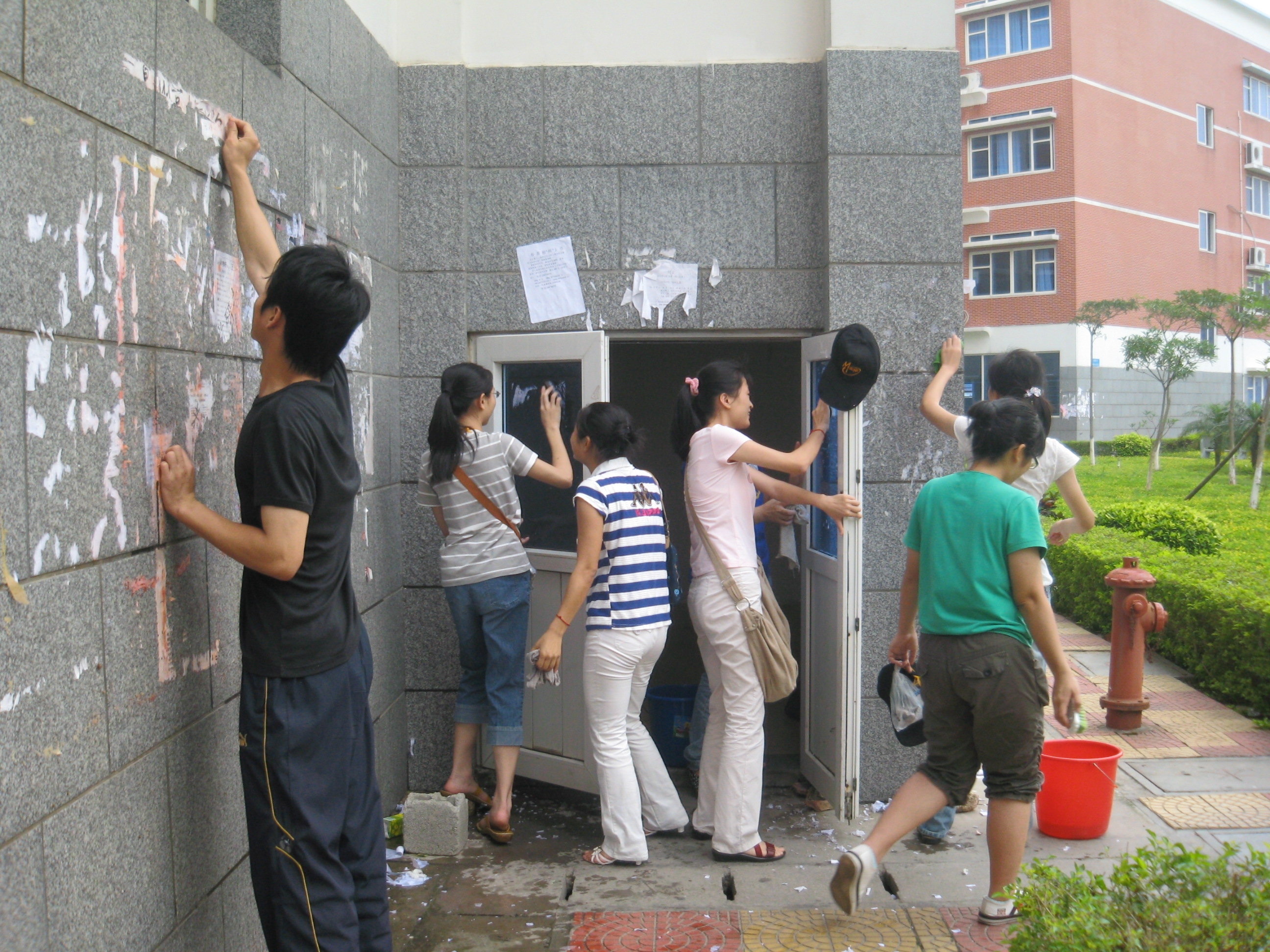 此次活动清除了校园内大量的“牛皮癣”,美化了校园环境。外国语学院的青年志愿者以实际行动在学生中树立“为人民服务,保护公共设施”的榜样,有利于推动我校道德文化素养的建设和提高。