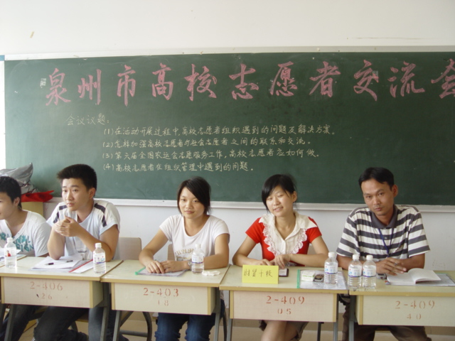 下午两点,与会各高校代表在文科楼B栋召开了分组讨论会。会上就目前志愿者活动面临的问题,如活动经费问题、各高校之间如何加强联系等进行了讨论,为今后各高校更好的开展活动提供了思路。