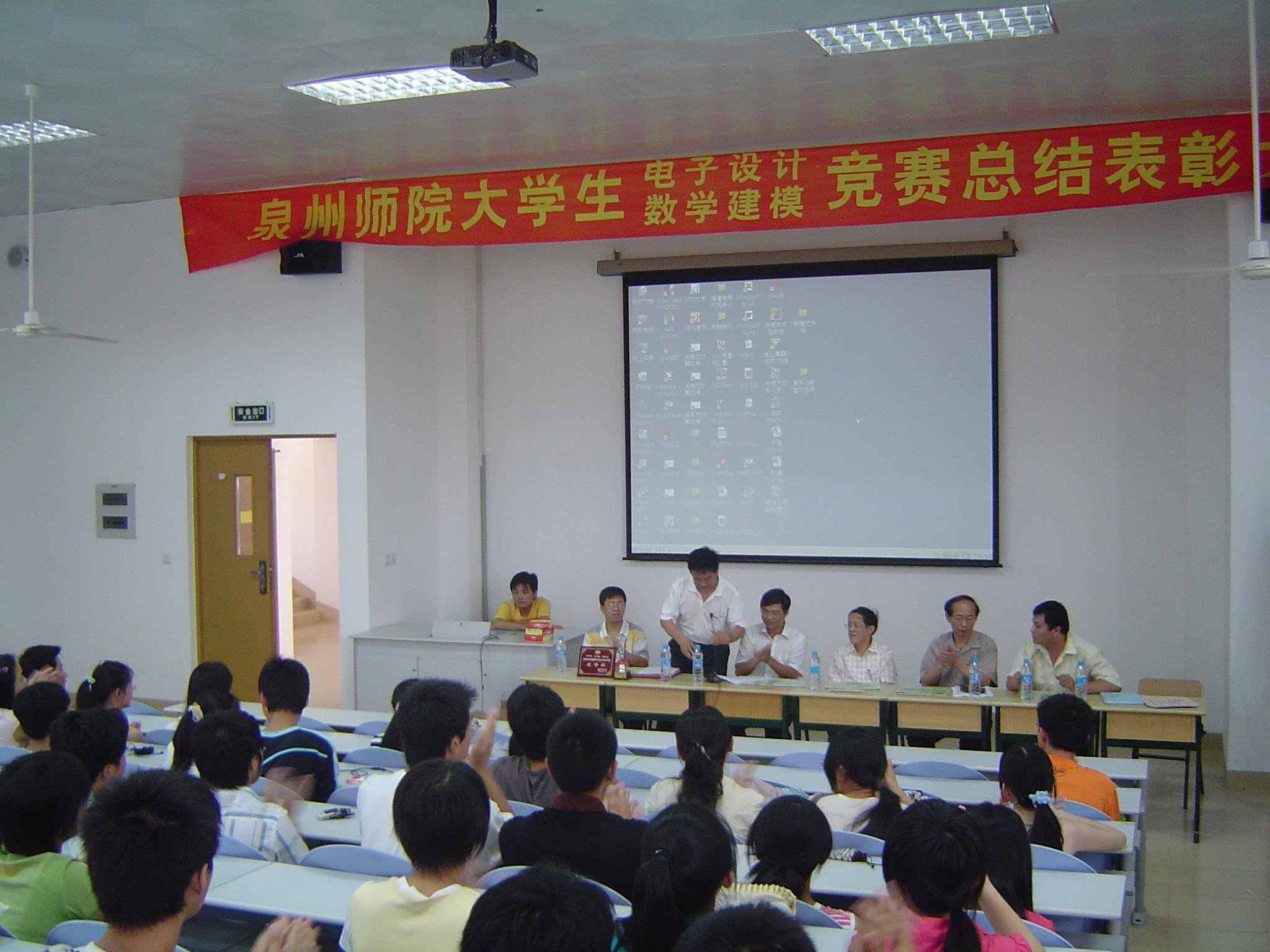 2007年6月14日下午,校第二届大学生数学建模、电子设计竞赛颁奖大会在理工教学楼218召开。教务处负责人、理工学院党政负责人、指导老师、参赛学生等与会。大会宣布了我校参加2006年全国大学生数学建模、2006年福建省电子设计竞赛的获奖代表队名单以及校、院给获奖代表队的奖励。(理工学院)