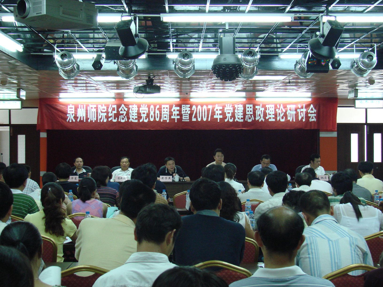 6月29日,我校纪念中国共产党成立86周年暨2007年党建思政理论研讨会在东海校区行政办公楼二层会议室隆重召开。校领导、机关部门负责人、各党总支委员、党支部书记、政治辅导员和论文作者出席会议。会议表彰了2007年党建思政理论研讨会6个“优秀组织奖”和20位优秀论文作者。校党委书记洪辉煌在会上作了重要讲话。校党委副书记、院长黄子杰主持会议。