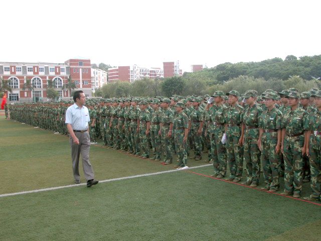 校党委副书记张舟检阅新生军训队伍