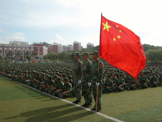军训队伍通过主席台