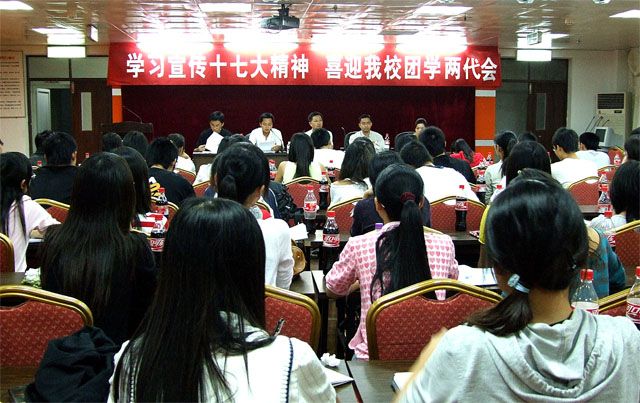 座谈会的主要内容有简要介绍胡锦涛总书记在十七大上作的题为《高举中国特色社会主义伟大旗帜,为夺取全面建设小康社会新胜利而奋斗》的报告内容;介绍了十七大报告中的新提法、新表述;介绍了我校第二次团、学代会的筹备情况以及团、学两份工作报告讨论稿形成过程、基本内容。会上,与会学生干部踊跃发言,纷纷表示要认真学习宣传大精神,以更加饱满的热情投身我校第二次团、学代会的筹备工作,确保大会圆满成功。