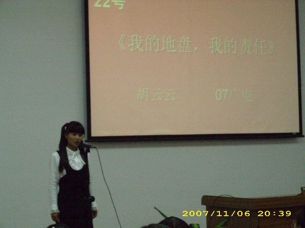 比赛以07级新生为主,分初赛和决赛。初赛共有45名选手参加,23名选手脱颖而出参加决赛。比赛过程中,选手们紧扣主题,取材新颖,表现从容自信、充满激情。他们或从身边小事入手,进而谈及责任,以小见大,或深情理性地讲述党的伟大历史进程,激情洋溢地歌颂党的辉煌成就,充分体现了该院学生与时代共前行,时刻准备接受党的召唤的精神风貌。选手们的精彩表现赢得了观众的阵阵掌声和评委的一致好评。(人文学院)