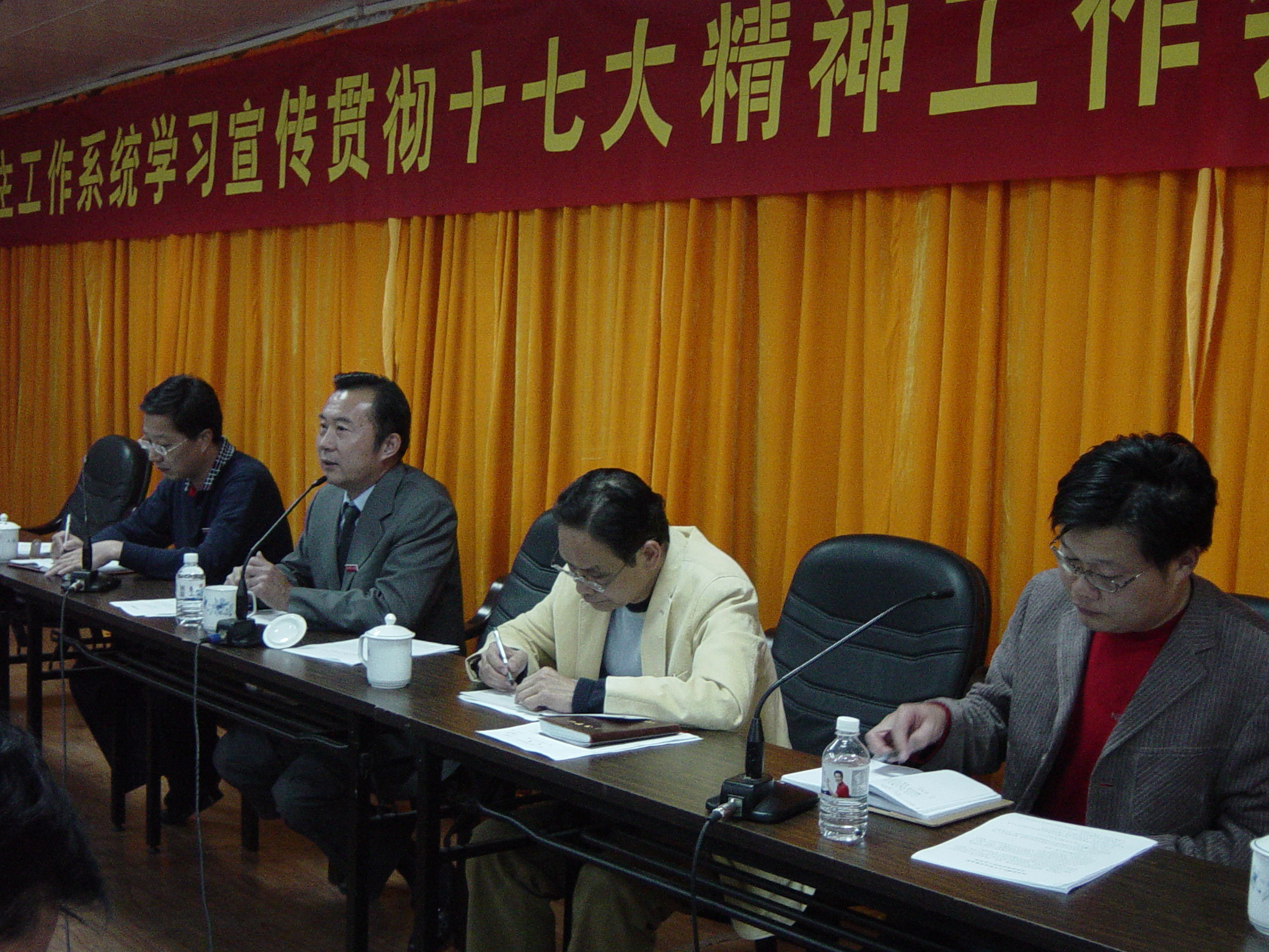 11月20日下午,我校在东海校区行政楼二楼大会议室召开学生工作系统学习宣传贯彻十七大精神工作会议,相关部门负责人及全体学生工作干部出席了会议。校党委副书记张舟作了重要讲话。