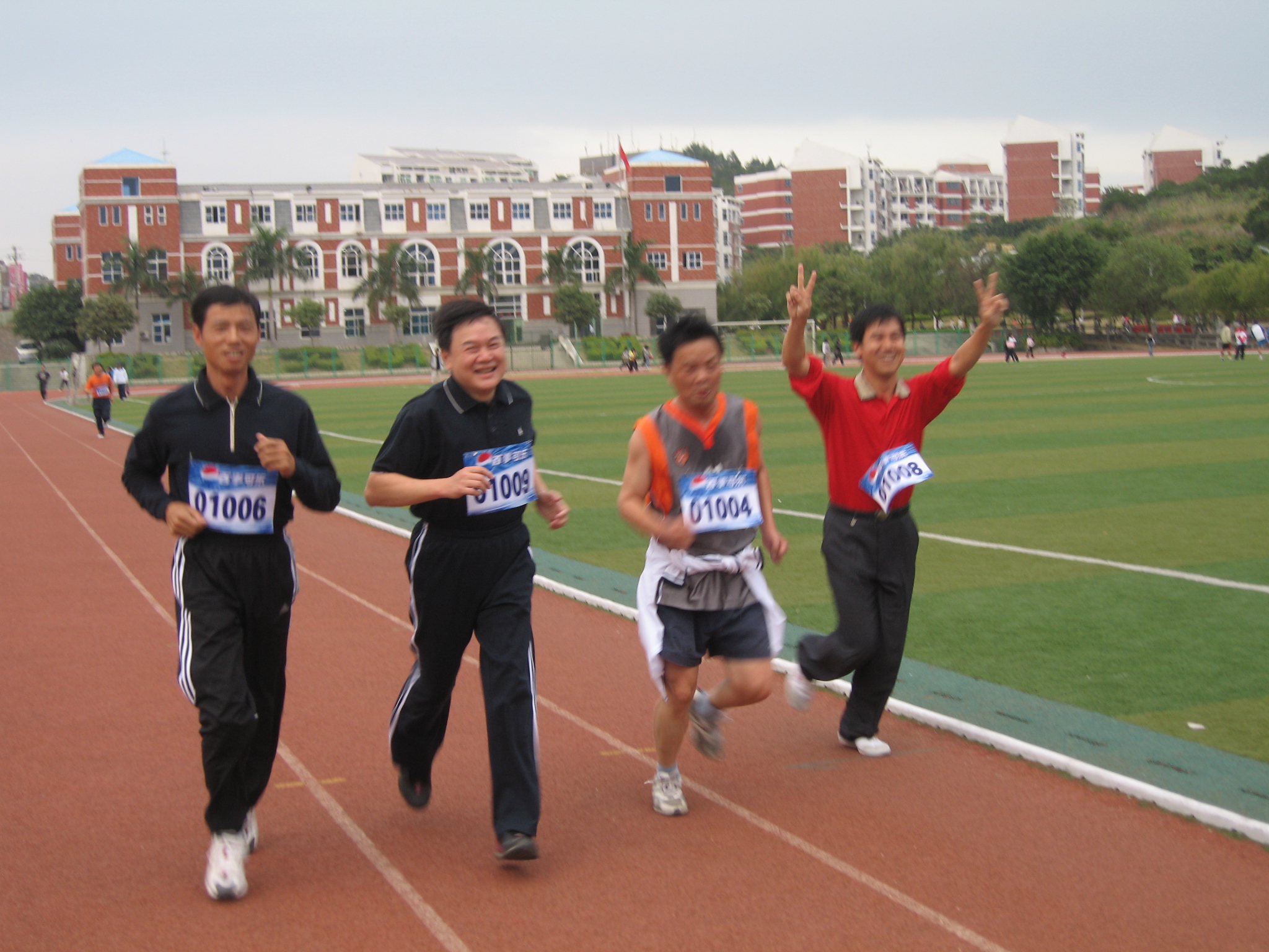 为积极响应“阳光体育运动”号召,丰富校园文化生活,增强学校的凝聚力,提高全体师生的锻炼意识,11月22日下午,由校工会、体育学院组织的师生环校长跑比赛在东海校区举行。比赛得到了广大师生员工的积极响应,有13个单位约400人报名参加了比赛。院长黄子杰、部分机关部门和二级学院负责人参加了比赛并跑完全程,为赛场增加了不少光彩。副院长林华东为起跑鸣枪。