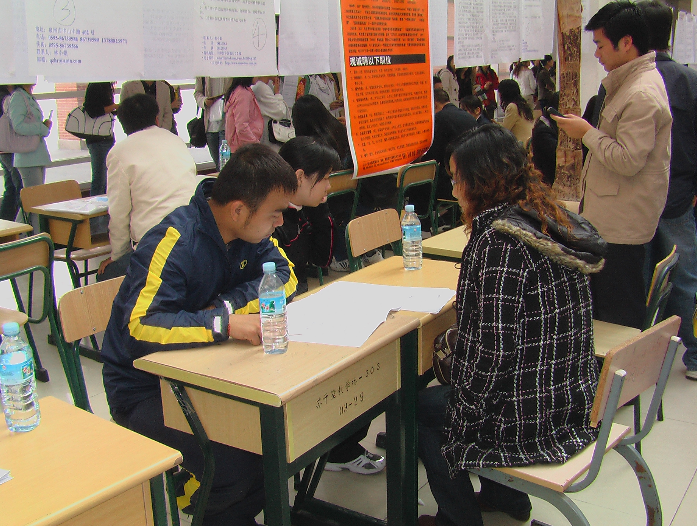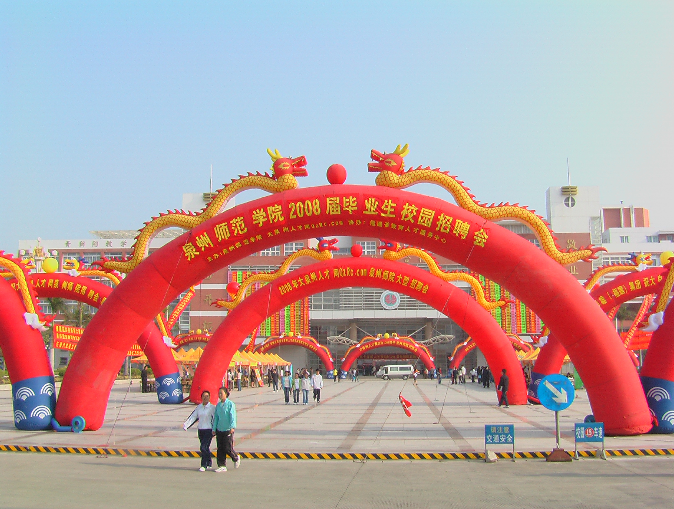 12月1日,我校与大泉州人才网联合举办了2008届毕业生校园大型人才招聘会,这是我校近年来举办的最大的校园招聘会。校党委副书记张舟、福建省教育厅高校学生处和福建省教育人才服务中心负责人到现场指导工作,并与用人单位和毕业生亲切交流。各二级学院毕业班辅导员也参加了招聘会,并为毕业生积极做好就业指导和推荐工作。