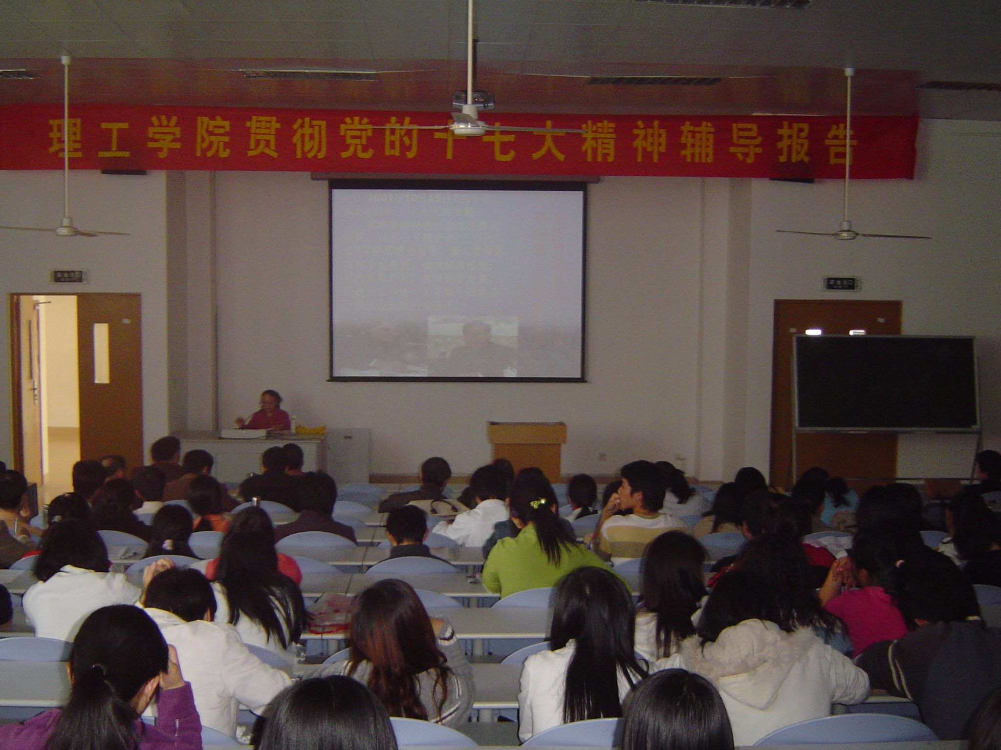 12月6日下午,理工学院在理工楼218室举行学习贯彻党的十七大精神辅导报告会。报告会由马列部钱立洁教授主讲。理工学院党政负责人、教职工和学生党员参加了报告会。