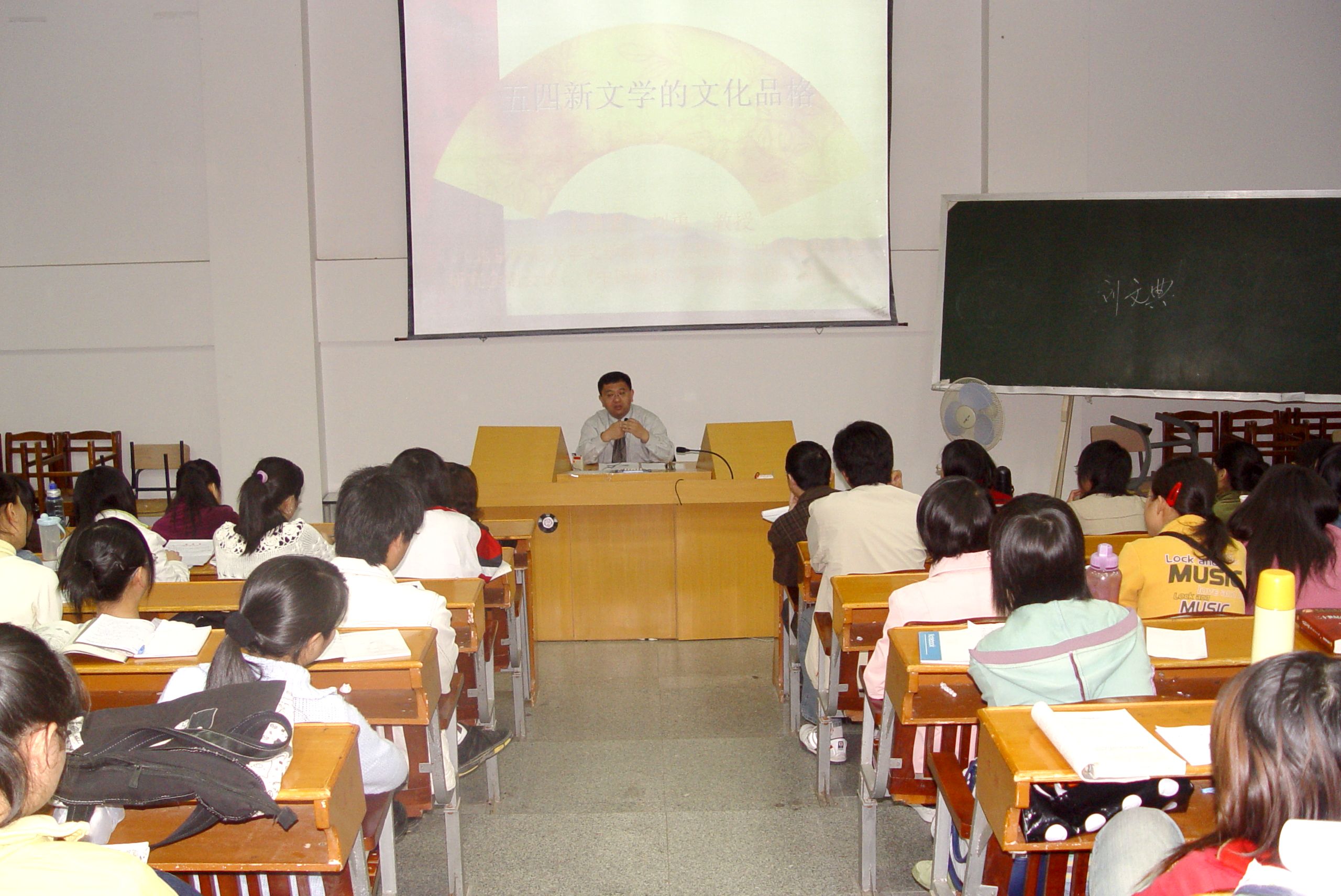 在讲座中,刘勇着重分析了五四新文学的人文精神和文化品格两个方面。谈到五四新文学的人文精神时,他指出,研究五四文学必须强调它的特殊定位。五四新文学热不是一个正常的、简单的文学潮流,从鲁迅弃医从文开始,大部分五四学者都不约而同地把目光集中到文学上,他们认识到对国民精神改造的重要性,因而它具有特殊性。同时,刘勇还指出,文学是人学,研究五四新文学也要研究作家的人格,以人格观照作品。所以,在分析五四新文学的文化品格时,刘勇认为五四新文学创作有几种精神值得继承:第一,现代作家既最注重创新,又最懂得继承;第二,五四那代人最渴求开放,同时又最励本,他们既读过“经”,又留过洋;第三,他们最渴望自由,又最承担责任;第四,他们最无情地批判社会,又最无私地解剖自己。