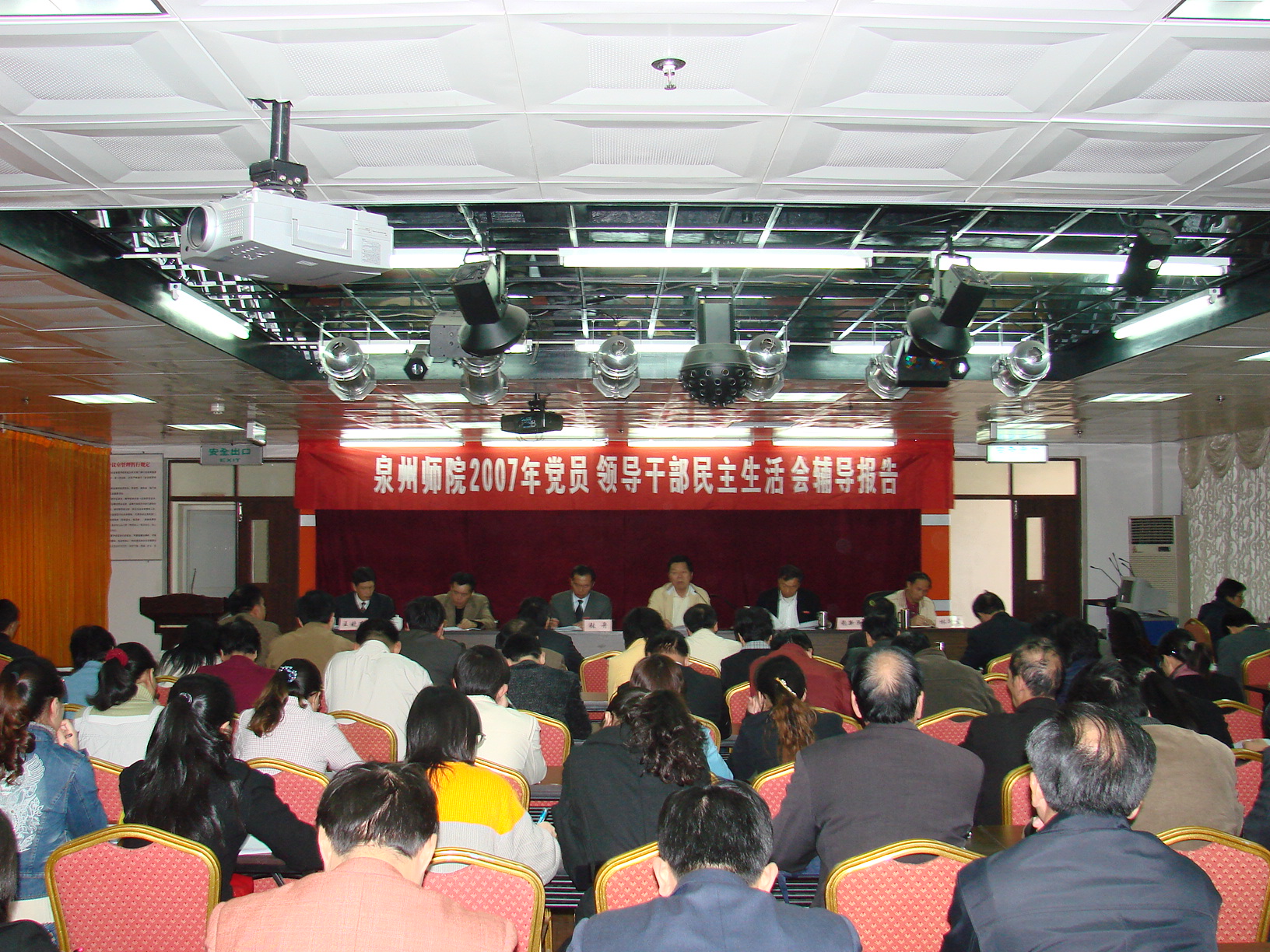 12月18日,我校党员领导干部民主生活会辅导报告在东海校区行政楼大会议室召开。在家的校领导、副处以上(含副处岗位的正科)党员领导干部、党总支委员、党支部书记参加了报告会。校党委书记洪辉煌作题为《提高执行力,永葆先进性》的辅导报告。报告会由校党委副书记赖新民主持。