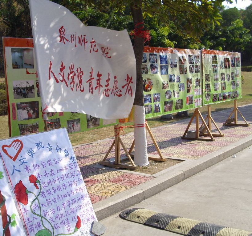 12月26日,人文学院爱心基金会、青年志愿者协会、影评协会、书画协会、漫画协会在校园内举办了为期三天的社团成果展。
