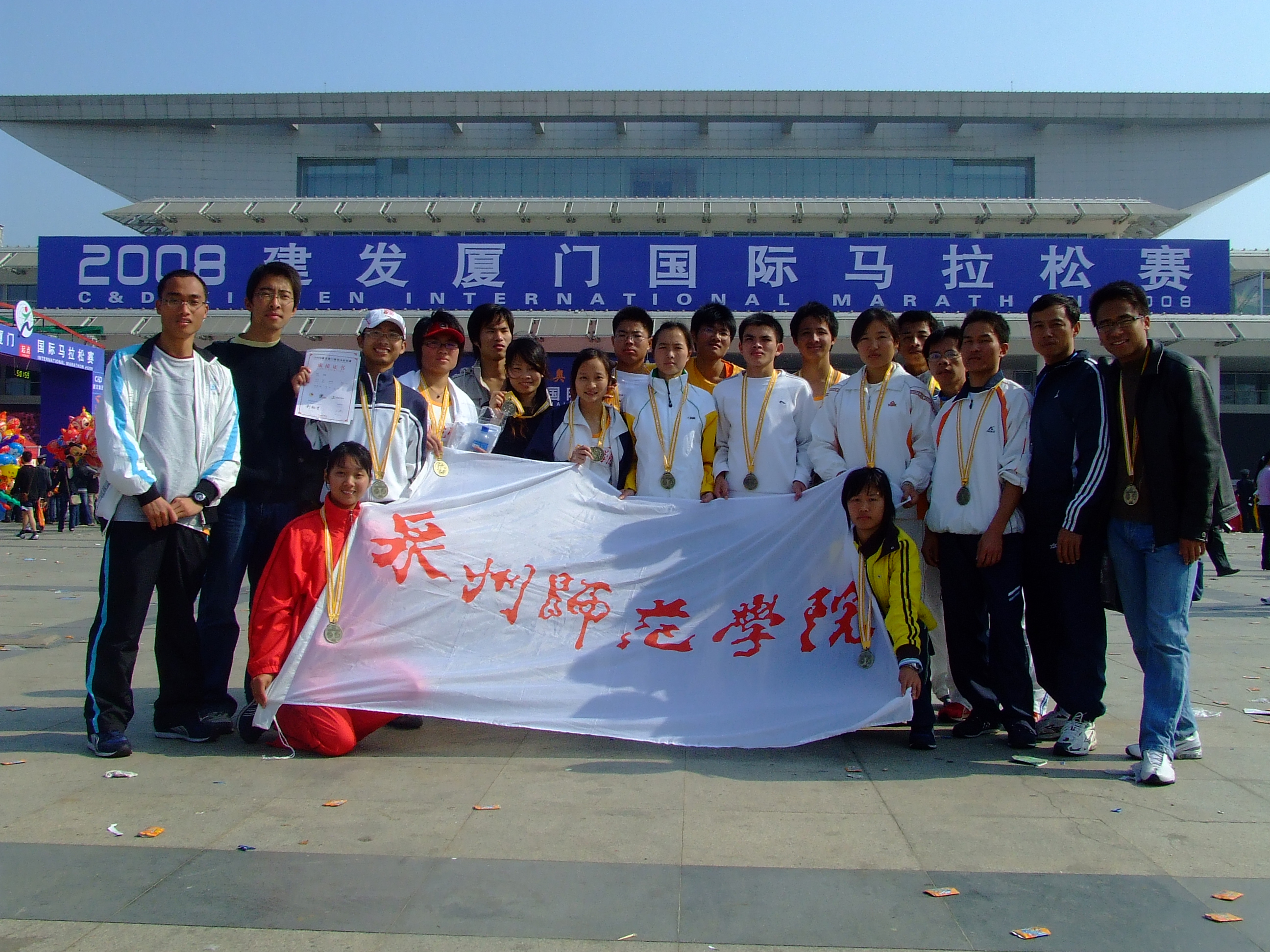 2008年1月5日,2008厦门国际马拉松赛暨全国马拉松锦标赛在厦门市揭开战幕,我校共派出了20名运动员参加比赛。经过3个多小时的艰苦比赛,最终20名运动员都顺利跑完全程。其中,有两名运动员跑进了前100名,六名运动员跑进了前200名。这是我校自2004年参加厦门国际马拉松赛以来取得的最好成绩。厦门国际马拉松比赛由中国田径协会和厦门市人民政府共同主办,设男、女全程马拉松,男、女半程马拉松,男、女10公里和5公里比赛,共有美、日、德等30多个国家和地区的3万名运动员报名参赛。(体育学院)