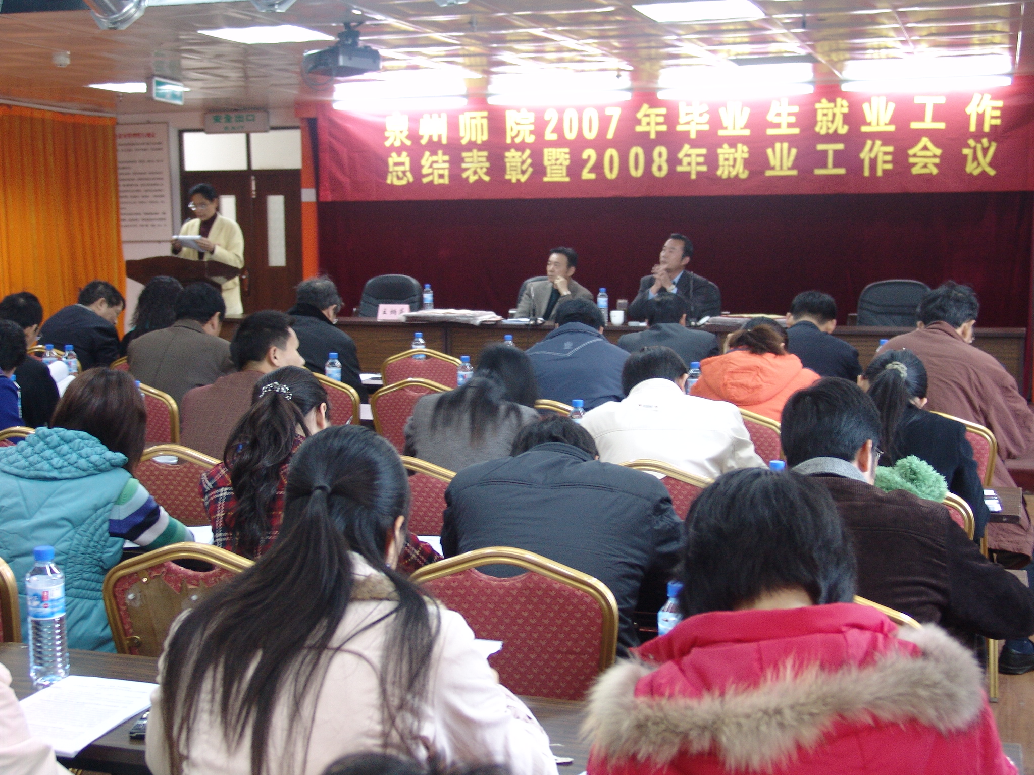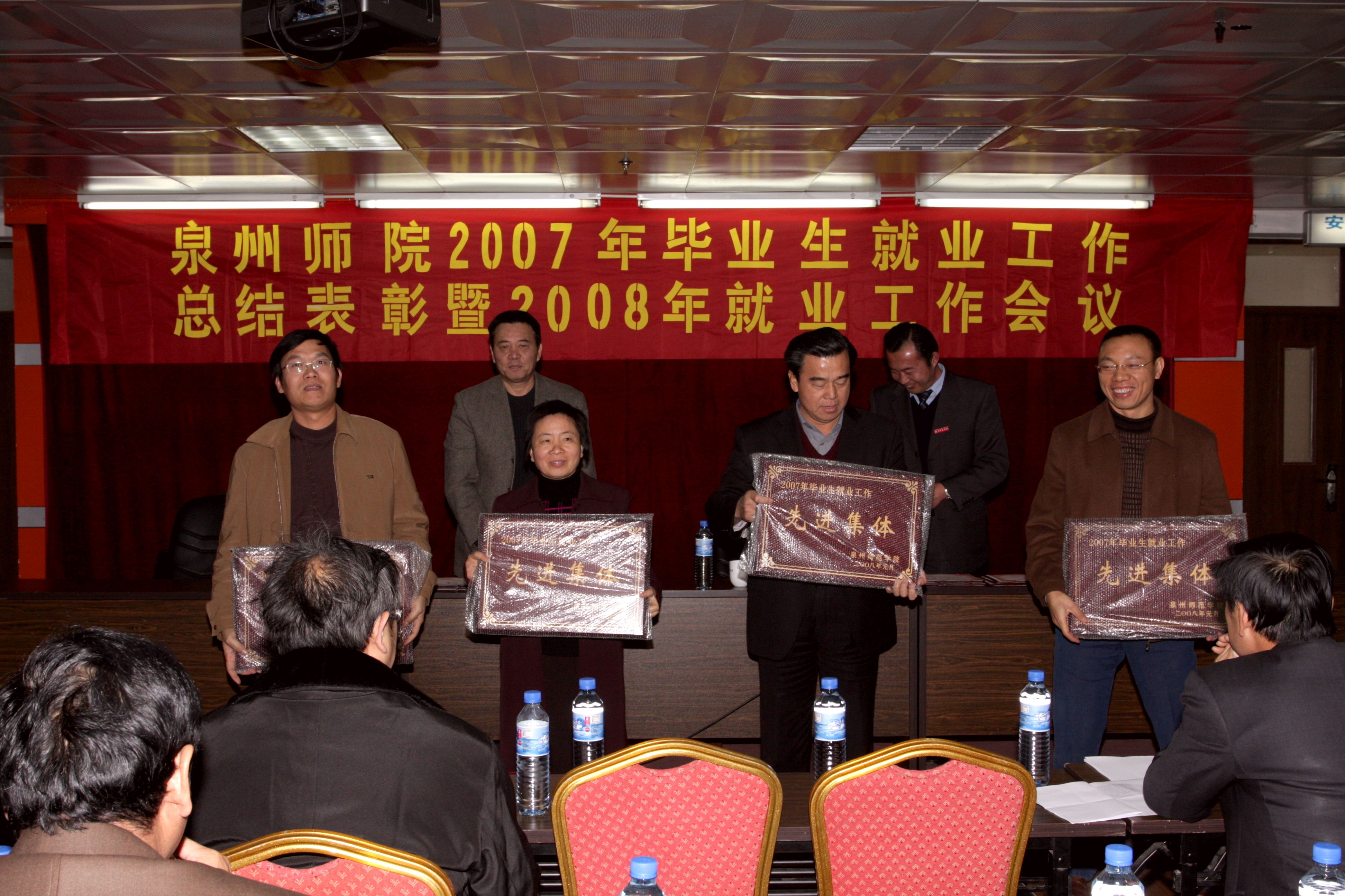 会议传达了教育部、省人事厅2008届全国普通高等学校毕业生就业工作会议精神,表彰了外国语学院、陈守仁工商信息学院、艺术学院和应用科技学院4个2007年毕业生就业工作先进集体以及18名就业工作先进个人。