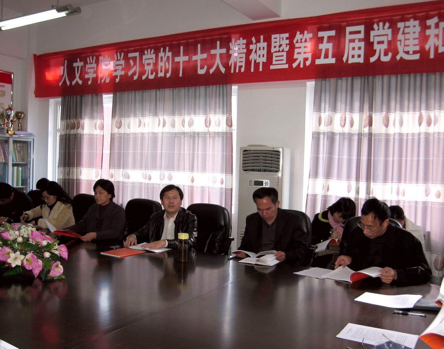 近日,人文学院党总支在人文学院会议室召开“学习党的十七大精神”暨第五届党建和思想政治工作研讨会。与会的有校组织部、宣传部负责人,人文学院党总支成员、各支部书记及优秀获奖论文作者等。