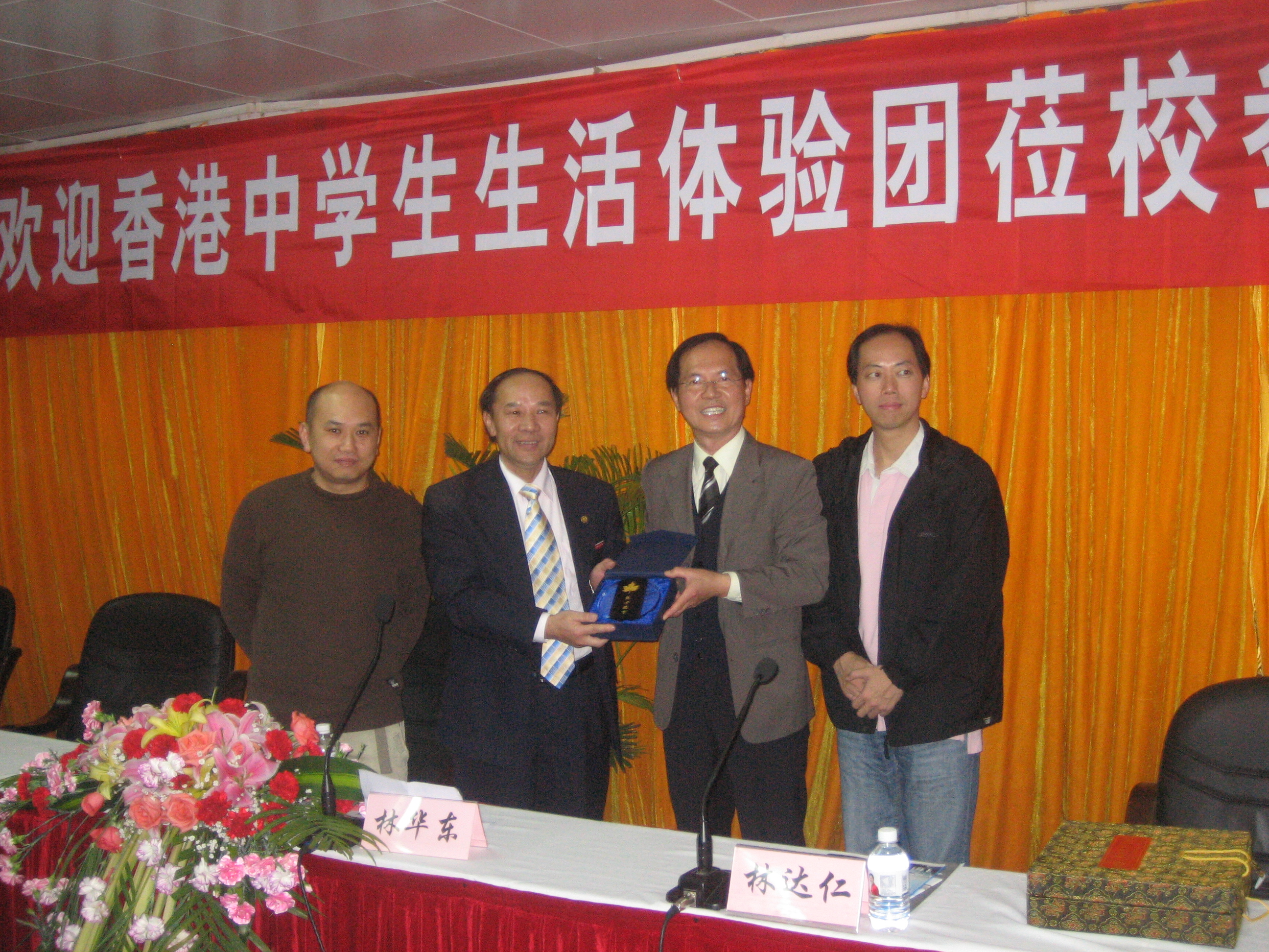 在交流活动中,我校学生现场表演了书法,绘画,南音等传统文化节目,得到了香港师生、家长的一致称赞和好评。随后,我校与香港中学生生活体验团互赠了礼物,并合影留念。(外事办 学生记者 饶燕华 陈锦铭)