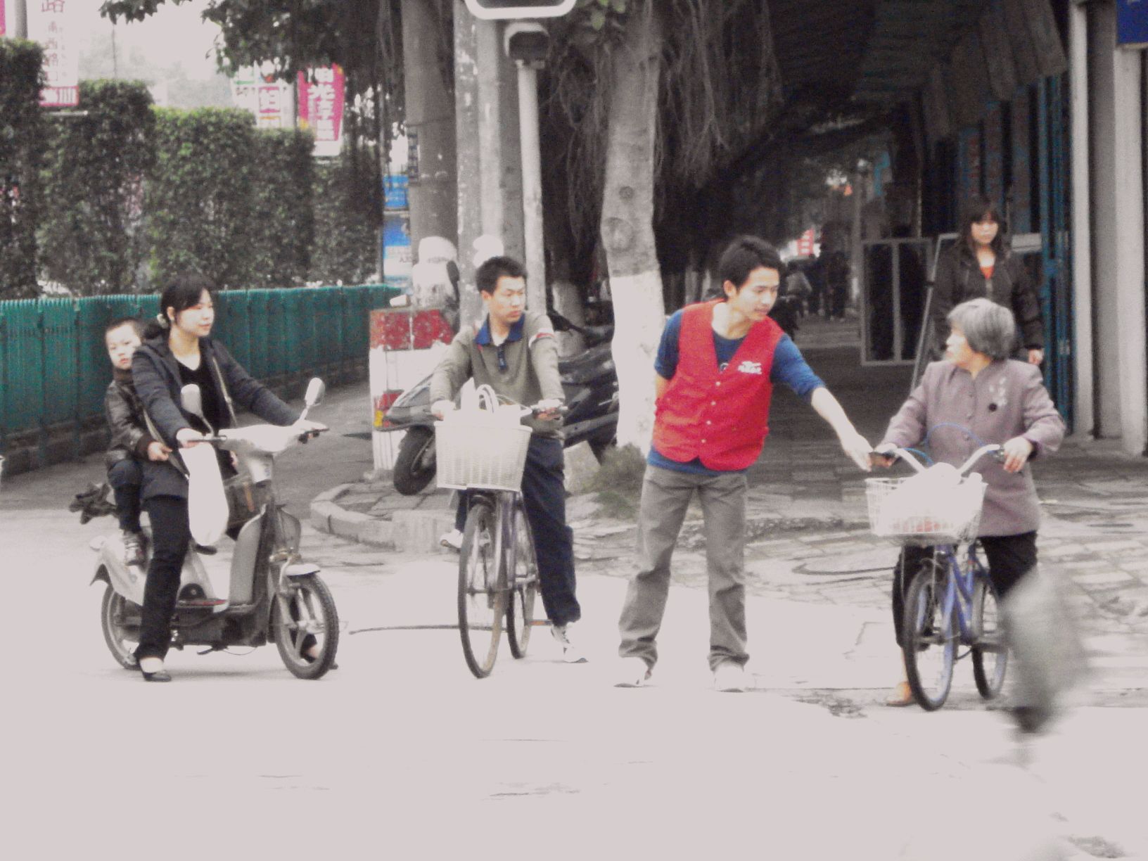 在丰泽街与田安路的交叉路口,学生党员们向过往行人分发交通安全宣传单,并配合丰泽区交警大队民警一同参加交通协管活动。学生党员们很认真地指挥着行人和自行车有序地穿行马路,纠正不规范的交通行为,并耐心给行人指路。大学生党员上街承担志愿活动是一件有意义的事情。同学们以实际行动呼吁每一名市民树立良好的交通意识,杜绝一切有碍交通顺畅运行的行为。