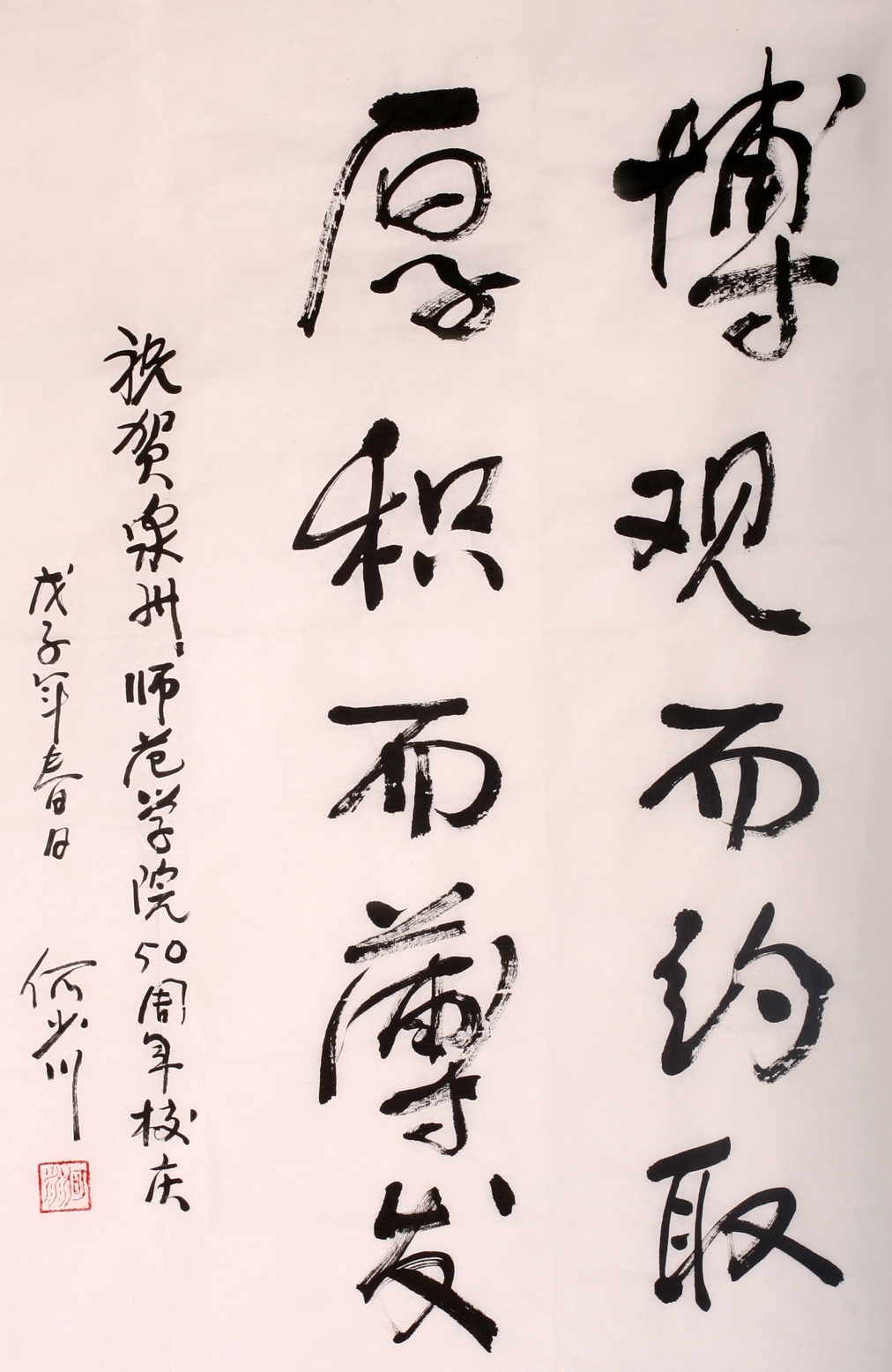 4月18日,院长黄子杰、校党委副书记赖新民赴福州拜会原中共福建省委副书记何少川,向何少川汇报了我校的建设发展情况及50周年校庆筹备情况。何少川肯定了我校抓住机遇,实现合并、升本的跨越式发展以及在全省新建地方性本科院校中的示范作用,并在新校区建设、人才培养等方面提出希望。何少川愉快地应允出席我校校庆庆典活动,并欣然为我校校庆题辞:博观而约取,厚积而薄发。