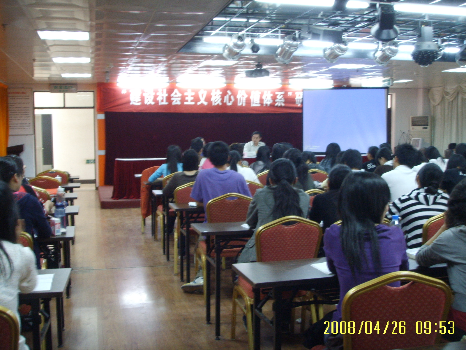 4月26日,由学校重点学科马克思主义理论与思想政治教育主办的的“建设社会主义核心价值体系”理论研讨会在我校召开。研讨会系我校50周年校庆系列学术活动之一。福建师范大学博士生导师苏振芳教授,华侨大学博士生导师庄赐福教授应邀在研讨会上做主题报告。出席会议的有机关相关部门、人文学院负责人,该重点学科的全体老师及思想政治教育专业的部分学生100多人参加了会议。会议由我校马克思主义理论与思想政治教育重点学科负责人刘玉生教授主持。会上,苏振芳、庄锡福分别做了主题为《建设社会主义核心价值体系的社会背景、重点和难点》、《社会主义核心价值体系的基本特征》的学术报告。结合现实,两位教授从不同角度对建设社会主义核心价值体系的有关问题做了解读和阐述。报告内容丰富,极具理论深度,受到与会师生的热烈欢迎。两位教授还就老师、学生的提问作了详细的解答。(人文学院 郑海志)