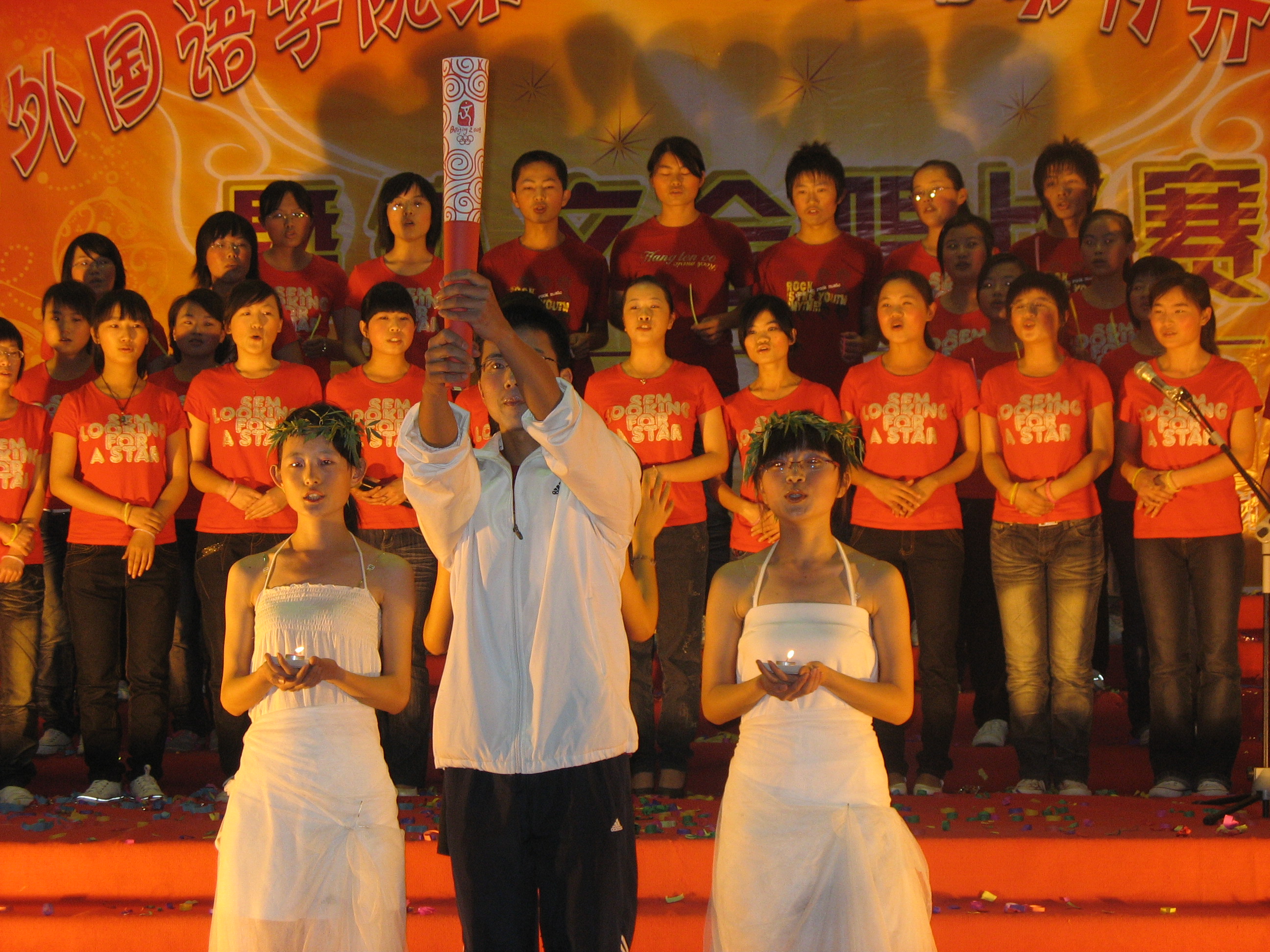 与首届开幕式不同,本次比赛不限主题。来自06、07级的20个参赛班级不约而同以畅想奥运为题材,别出心裁地运用火炬、手语、五环、气球等多种形式把歌曲主题演绎得淋漓尽致,用心诉说对奥运的期盼,呼唤“同一个世界,同一个梦想”。其中,做为首个参赛班级,07经英2班以其出色娴熟的指挥及班级同学近乎完美的默契,用《Forever Friends》唱响了心中对奥运会的向往,最终以9.21的高分摘得本次比赛的桂冠。