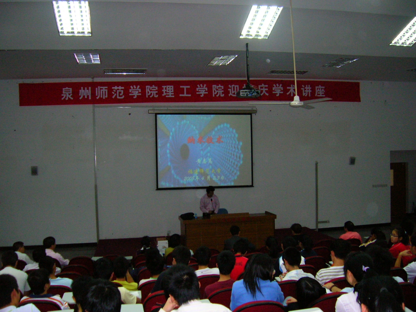黄志高教授作题为《纳米技术的现状与新进展》的学术报告。报告会上,黄志高教授全面介绍了纳米技术的历史、现状与新进展,详细讲解了纳米材料的制备、用途、产业化前景以及2007年诺贝尔物理学奖的相关知识,师生们深受启迪。(理工学院)