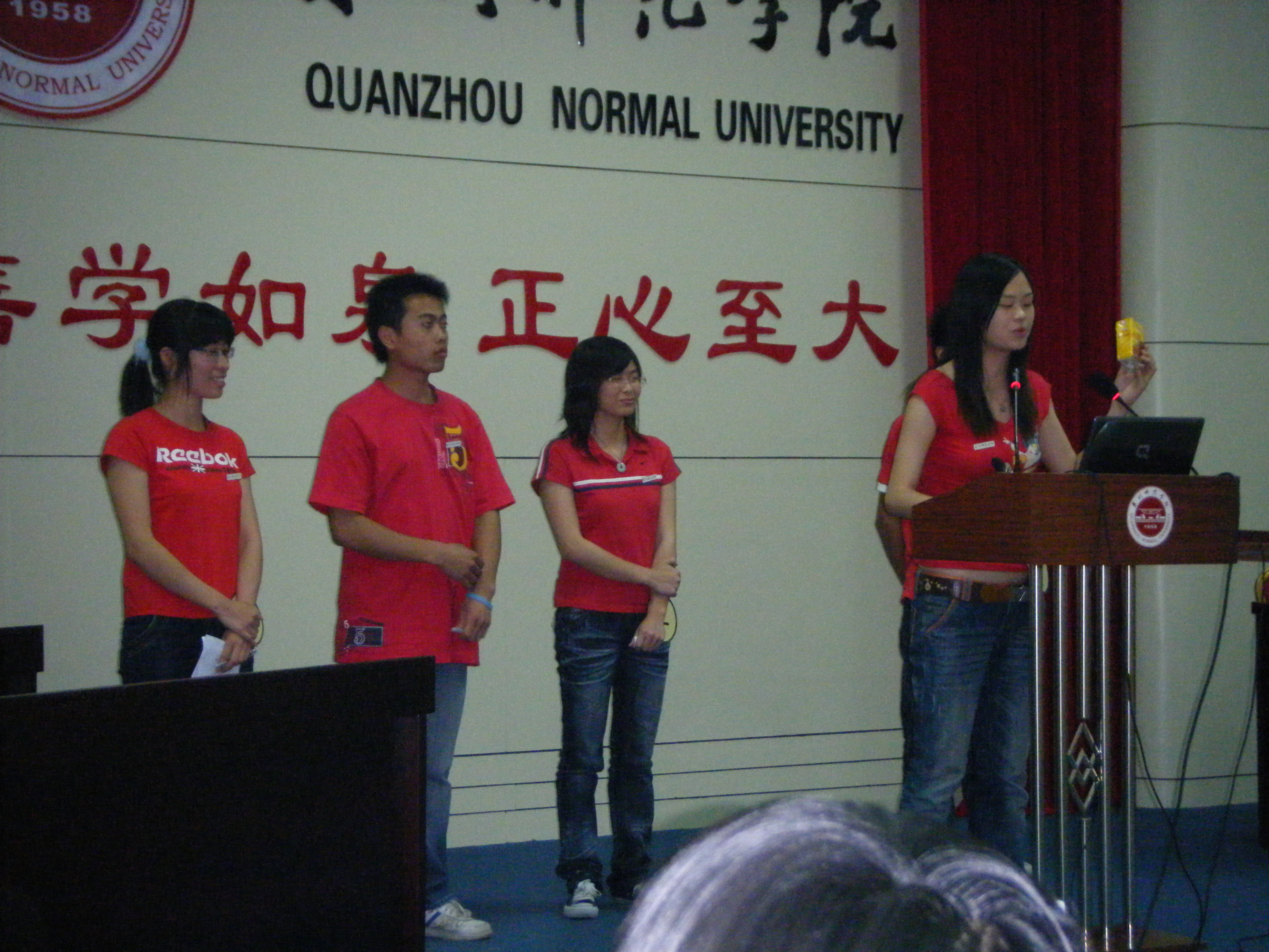 决赛分为两个环节:PPT展示和现场答辩。在第一个环节中,各小组利用他们精心准备的PPT进行了精彩的个性展示和介绍:“J.I.T(Join in top)”小组的“校园三角物流”设想为校园物流建立一个信息平台;“LG” 小组的“新协志仓储流程再造” 对晋江模式下高速发展的企业的仓储提出了改造的可能性;“Partner”小组的“漳州水仙花运输设计”为漳州的花农展现了一个完美的花卉运输设计;“蓝队”的“泉州农运物流”则对即将在泉州举行的农运会的物流提出了现实可能性; “一骑泉流”方案展示出了校园电子商务的发展趋势等,都给在场的评委和观众留下了深刻的印象,博得了大家的阵阵喝彩,经评委评选,“J.I.T(Join in top)”小组、“LG” 小组、“Partner小组”和“五加皮”小组进入第二环节。比赛进入到现场答辩更为白热化,针对评委提出的问题——泉州物流产业的发展趋势,各晋级小组在规定时间内分别做出了对答。最后“LG小组”用他们完善的方案和精彩的解答以83.25的高分夺得了本次比赛的冠军,“Partner小组”和“五加皮小组”分别以81.5和81.25的好成绩分获冠亚军。