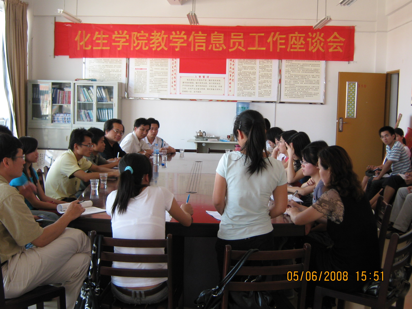 2008年6月5日,化生学院召开教学信息员工作座谈会。学院党政负责人、专业主任、教务科及分团委负责老师参加了座谈会。