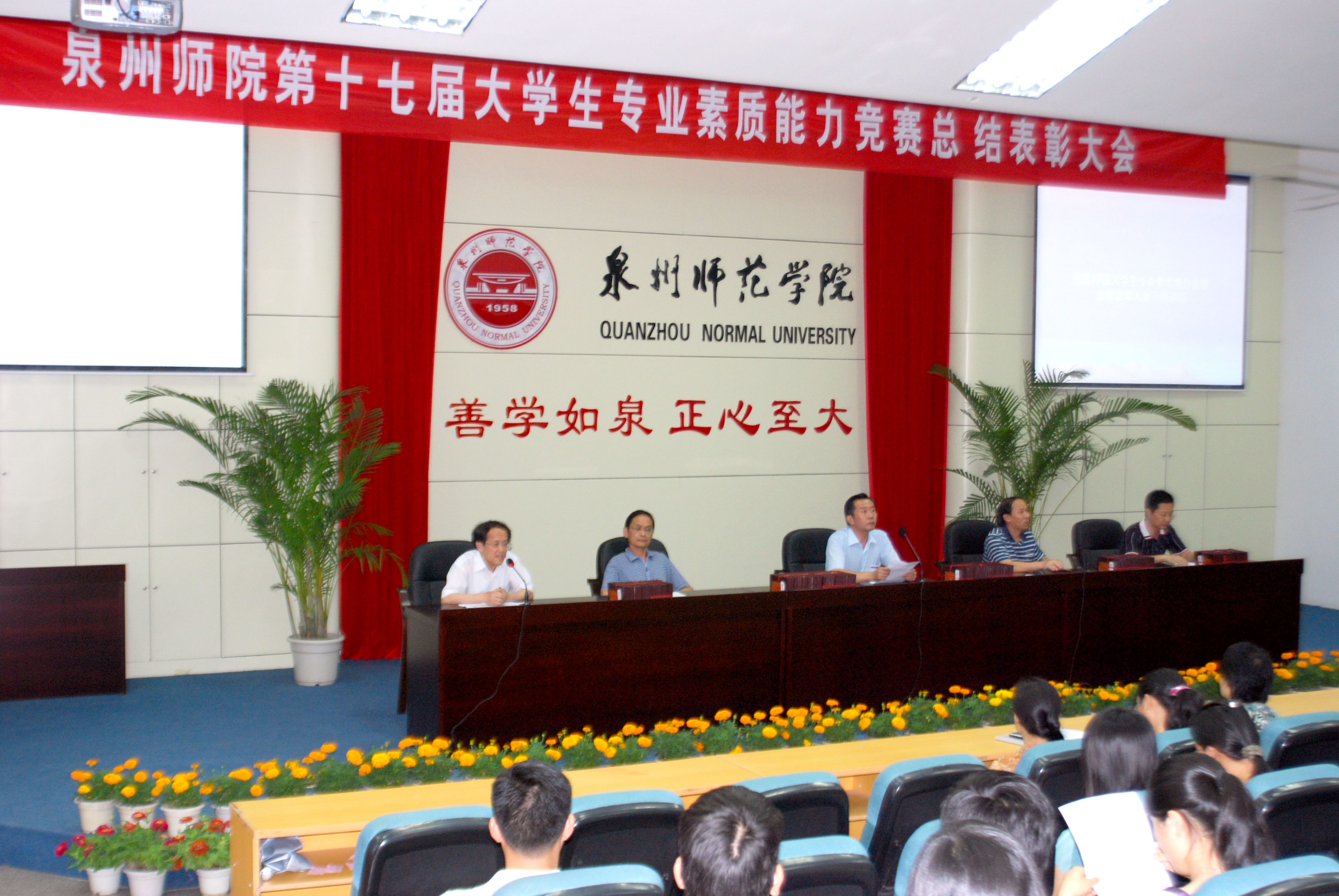 6月12日下午,泉州师范学院第十七届大学生专业素质能力竞赛总结表彰大会在中山纪念堂三楼第二学术报告厅举行。校党委副书记张舟、副院长林华东、教务处处长林文琛、学生处处长傅子信、校团委书记张玉武及第十七届大学生专业素质能力竞赛活动组成员和各二级学院师生代表近300人出席了表彰大会。大会由林文琛主持。