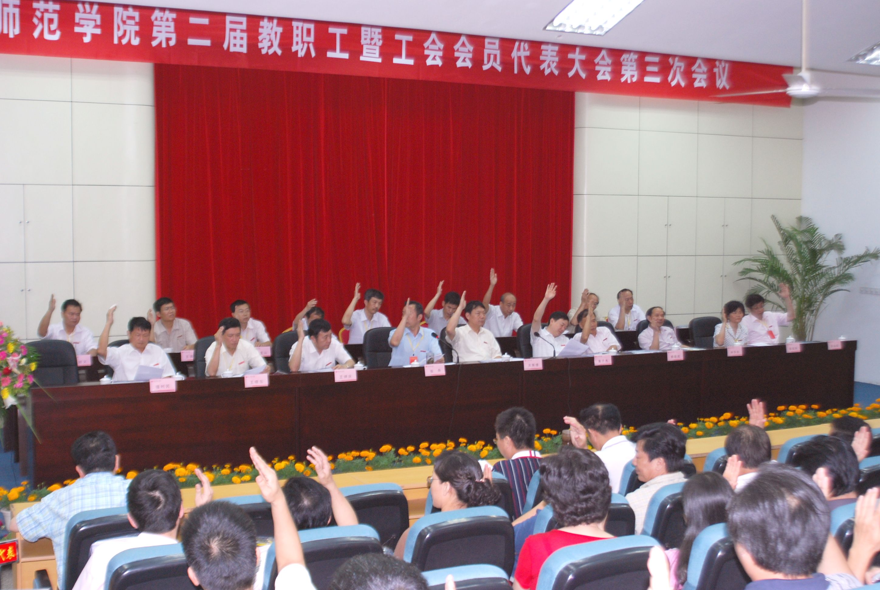 6月14日,我校第二届三次教职工代表大会暨工会会员代表大会在东海校区孙中山纪念堂学术报告厅举行。全体校领导以及157位正式代表、16位列席代表和1位特邀代表出席会议。校党委书记洪辉煌在闭幕式上作重要讲话。黄子杰院长作《学校工作报告》。会议由党委副书记、工会主席张舟主持。
