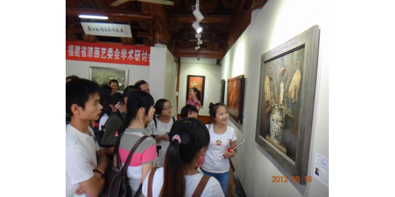 此次研讨会和画展由泉州师院美术与设计学院承办。画展共展出福建省美协漆画艺委会委员的25幅漆画新作,美术与设计学院卫军和孙宏图两位老师的作品参展。此次漆画作品展实际上是泉州美术界人士参加第十二届全国美展的热身创作动员会,鼓励福建漆画艺术家以良好的创作状态迎接新一轮挑战,再创辉煌。