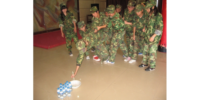 训练从“集体按摩操”开始,轻松有趣的暖身活动很快就消融了彼此间的陌生感。随后进行的“解开千千结”,立刻让队员意识到这不是一场放松的娱乐游戏,而是一次深刻的心灵成长之旅。而后是15分钟的团队组建,包括选出队长、确定队名口号、制作队标、团队展示。在集思广益、分工合作中,每个队员学着沟通理解,学会责任担当。随后进行的活动大项有夹珠取水、高空抓杠和翻越求生墙。