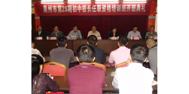 2012年11月6日上午,泉州市“十二五” 初中校长任职资格培训班在泉州师院行政大楼二楼会议室隆重举行。我校副校长林华东、泉州市教育局副局长刘殊芳、人事科科长俞捷等出席开班典礼。继续教育学院院长郑文谦主持典礼。来自泉州地区各县(市)、区55所学校的58位初中校长以及继教学院的相关领导和老师参加开班典礼。