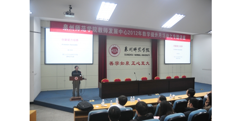 11月22日下午,厦门大学林圣彩教授、博导应校教师发展中心邀请,在孙中山纪念堂第二学术报告厅为我校和泉州黎明职业大学等院校教师,作题为“创新能力培养”的学术讲座。