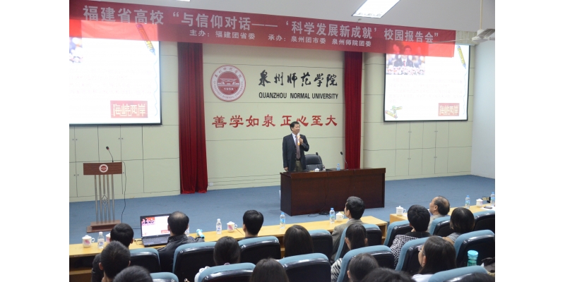 2012年11月26日晚上,泉州市人民政府副市长陈荣洲在我校“泉州湾大讲堂”为“卓越人才课程班”全体学生作题为《两岸关系纵横谈》的学术报告。教务处、团委会负责人和课程班全体学生及航海学院部分学生共300多人参加了报告会。林华东副校长主持报告会。