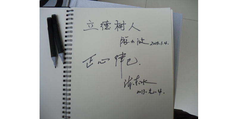 游小波和陈东水对我校举办以廉洁文化教育为主题的书法、绘画、海报作品给予了充分肯定。游小波指出,在学生中开展廉洁教育具有重要意义,我们要将廉洁教育贯穿于校园文化建设中。希望能定期开展此类校园文化教育活动,鼓励同学们踊跃参与。最后,游小波在题签本写下了“立德树人”的题词,陈东水题写了“正心律己”。