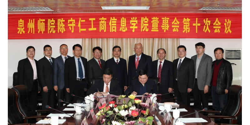 庆典期间,陈守仁博士主持召开了工商信息学院董事会第十次会议,校党委书记游小波、校长黄子杰、副校长林华东、副校长高云程参加会议。黄子杰校长在讲话中对陈守仁博士身体力行,关心支持学校发展的善举表示感谢。他表示,学校今后将一如既往支持工商信息学院的发展,希望工商信息学院继续努力,以优异成绩回报学校,回报陈守仁博士的大力支持。 会上签署了陈守仁基金会向泉州师范学院教育基金会捐赠一百万元的协议。