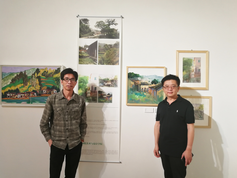 研讨会期间,配套展览在四川美院美术馆、艺术与乡村研究院同步开幕,蔡永辉与我校美院学生的三幅油画、水彩作品在“艺术+乡村”探索文献展区艺术实践版块参展。展览邀请了全国113所院校,写生村落123个,参加人数350余人,收到作品435件,包含油画、版画、中国画、摄影、摄像作品等多种艺术形式。展览旨在承续百年乡村美育的历史线索,促成“百校”在“百村”的美育实践。