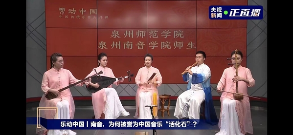 9 月 23 日,我校音乐与舞蹈学院六名师生受邀参加由中央广播电视总台《中国之声》栏目主办的《乐动中国:南音,为何被誉为中国音乐“活化石”》直播录制。为全球观众呈现了一场视听盛宴,充分展示了南音文化的独特魅力和精髓。
