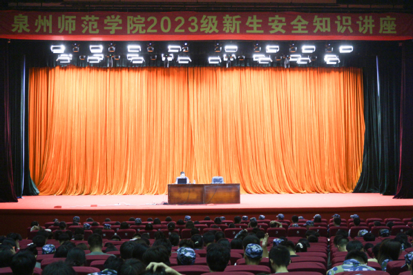 9月23日晚,我校在陈祖昌大礼堂组织开展2023级新生安全知识讲座,辅导员及新生1400余人参加。讲座邀请了后渚海防派出所副教导员胡杨和丰泽交警事故处理中队陈龙亮警官等围绕消防安全、预防诈骗和交通安全三个专题展开授课。