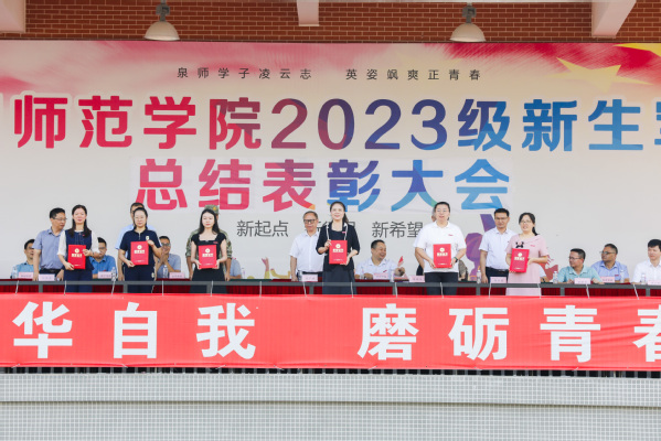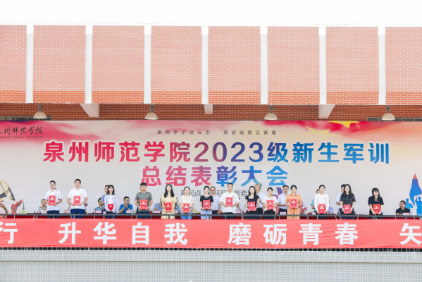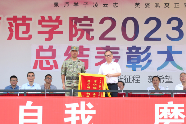 会上,校党委副书记、校长屈广清向军训团团长江新锋赠送锦旗,感谢73141部队对我校军训工作的大力支持。校党委副书记陈晓风对新生军训取得的成效表示肯定,勉励同学们要坚定理想、胸怀祖国,珍惜时光、不负韶华,昂扬向上、笃行致远,成长为有理想、敢担当、能吃苦、肯奋斗,堪当民族复兴大任的时代新人。教务处相关负责人宣读了表彰通报,与会领导分别为先进集体和个人进行颁奖。教育科学学院学生皇甫彦滋同学代表军训标兵发言。